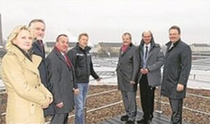 Als ein „Vorbild für andere Firmen“ lobt Oberbürgermeister Boris Pistorius kürzlich die Firma Kaffee Partner. Auf dem neuen Verwaltungsbäude auf dem ehemaligen Gelände der Winkelhausenkaser wurde eine Photovoltaikanlage mit 788 Solarmodulen und einer Spitzenleistung von 208 Kilowatt installiert. Mit Jens Strebe vom Vorstand der Kaffee Partner Leasing, Alois Plüster, Geschäftsführer der Firma sunconcept und Ute Fritsch-Riepe vom Fachbereich Umwelt und Klimaschutz der Stadt, stellte Pistorius jetzt das innovative Konzept vor. Die Anlage könne umgerechnet 50 Durchschnittshaushalte ein Jahr mit Energie versorgen. 75 % des erzeugten Stroms geht in die Eigenversorgung von Kaffee Partner über. Der Rest geht ins Versorgungsnetz. Der Oberbürgermeister hofft, dass sich andere Firmen Kaffee Partner nacheifern und so aktiv ihren Teil zur Energiewende beisteuern.